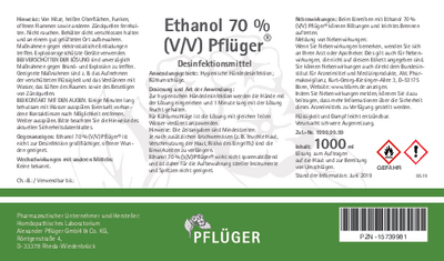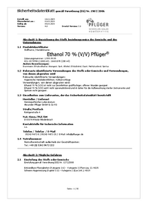 Alle Analysenzertifikate für Ethanol 70% (V/V) Pflüger (200 ml und 1000 ml) finden Sie hier: