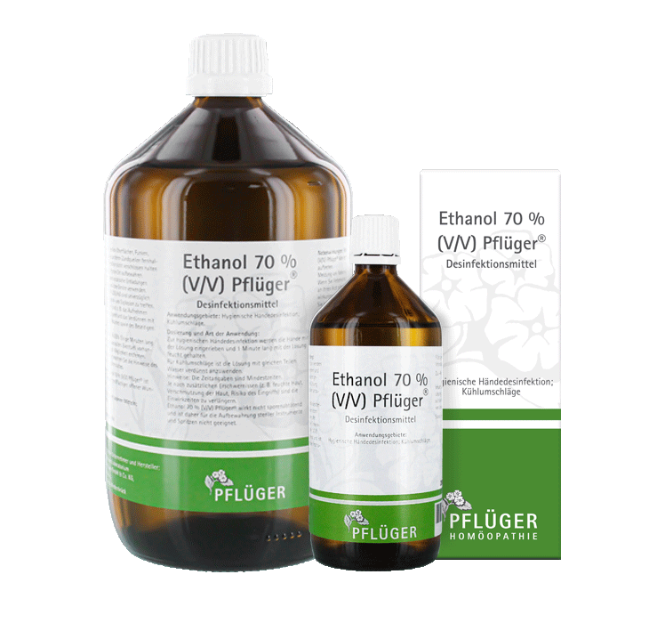 Seit dem 1. April 2020 vertreibt das Homöopathische Laboratorium Alexander Pflüger GmbH & Co. KG von Ethanol 70 % (V/V) Pflüger® neben der 1000 ml-Flasche eine zusätzliche 200 ml-Flasche als neue Packungsgröße. Die Lösung dient der hygienischen Händedesinfektion und zur Bereitung von Kühlumschlägen. Ethanol 70 % (V/V) Pflüger® ist unter der PZN 16601078 (Inhalt 200 ml) und 15739981 (Inhalt 1000 ml) erhältlich.