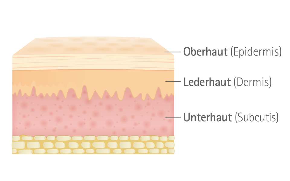Insgesamt besteht die Haut aus drei Schichten: der Oberhaut (Epidermis), der Lederhaut (Dermis) und der Unterhaut (Subcutis). Jede Schicht übernimmt eine wichtige Aufgabe.