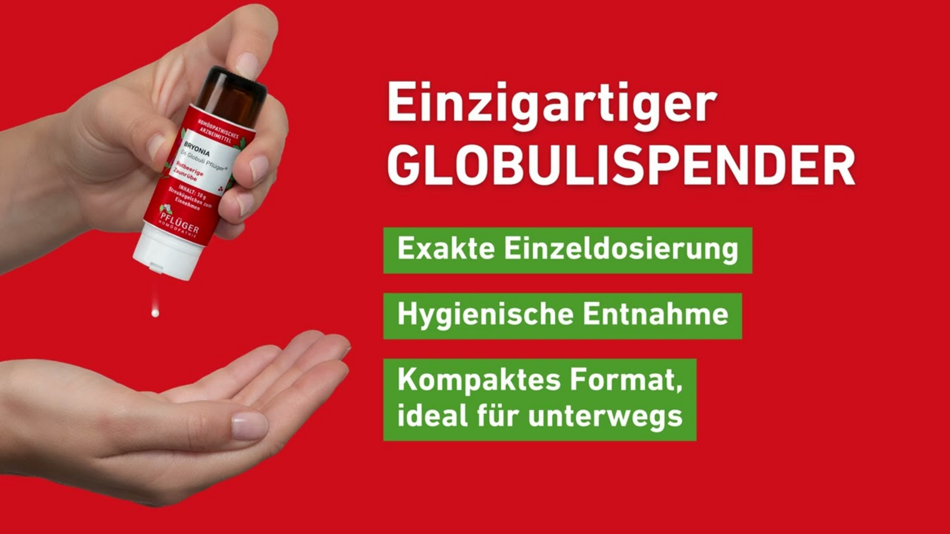 Nur von Pflüger gibt es Bryonia im praktischen Globulispender. Dieser ermöglicht sowohl die hygienische Entnahme als auch eine exakte Dosierung. Unsere Verwender sind von der einfachen Anwendung begeistert und schätzen das kompakte Format auch für die Mitnahme unterwegs.